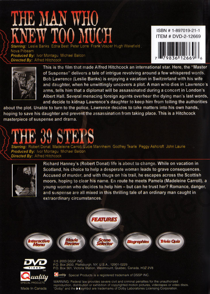Alfred Hitchcock's - Man Who Knew Too Much / The 39 Steps
