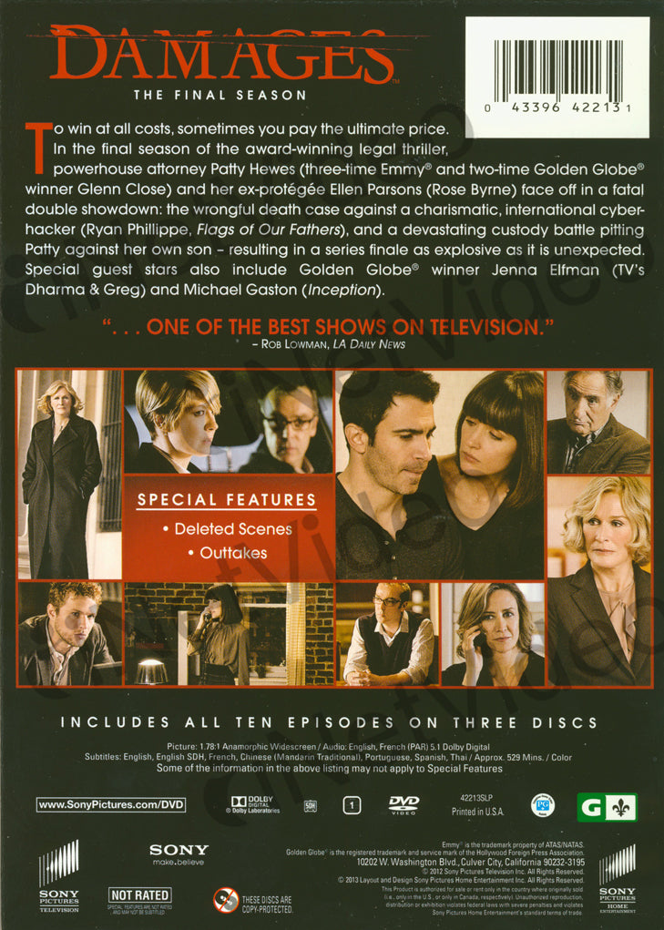 {"year":{"key":"year","description":"Year","value":"2013","value_type":"string","namespace":"year"},"actors":{"key":"actors","description":"Actors","value":"Glenn Close, Rose Byrne, Ryan Phillippe, Zachary Booth, Glenn Close, Rose Byrne, Ryan Phillippe, Zachary Booth","value_type":"string","namespace":"actors"},"region":{"key":"region","description":"Region","value":"NTSC-U/S (United States/U.S. territories, Canada or Bermuda systems)","value_type":"string","namespace":"region"},"language":{"key":"language","description":"Language","value":"English; Fre","value_type":"string","namespace":"language"},"rating":{"key":"rating","description":"Rating","value":"PG","value_type":"string","namespace":"rating"},"publisher":{"key":"publisher","description":"Publisher","value":"warehouse","value_type":"string","namespace":"publisher"},"discs":{"key":"discs","description":"Discs","value":"3","value_type":"string","namespace":"discs"},"runtime":{"key":"runtime","description":"Runtime","value":"529","value_type":"string","namespace":"runtime"},"director":{"key":"director","description":"Director","value":"Todd A. Kessler / Matthew Penn","value_type":"string","namespace":"director"},"format_size":{"key":"format_size","description":"Format size","value":"Widescreen","value_type":"string","namespace":"format_size"},"subtitles":{"key":"subtitles","description":"Subtitles","value":"French, Spanish","value_type":"string","namespace":"subtitles"}}