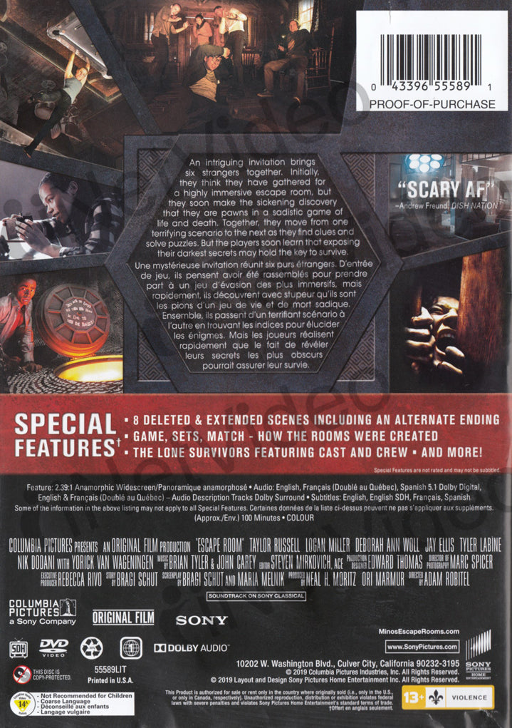 {"year":{"key":"year","description":"Year","value":"2019","value_type":"string","namespace":"year"},"country":{"key":"country","description":"Country","value":"MX","value_type":"string","namespace":"country"},"actors":{"key":"actors","description":"Actors","value":"Deborah Ann Woll, Jay Ellis, Logan Miller, Taylor Russell, Tyler Labine, Deborah Ann Woll, Jay Ellis, Logan Miller, Taylor Russell, Tyler Labine","value_type":"string","namespace":"actors"},"region":{"key":"region","description":"Region","value":"NTSC-U/S (United States/U.S. territories, Canada or Bermuda systems)","value_type":"string","namespace":"region"},"language":{"key":"language","description":"Language","value":"English; Fre","value_type":"string","namespace":"language"},"rating":{"key":"rating","description":"Rating","value":"PG-13","value_type":"string","namespace":"rating"},"publisher":{"key":"publisher","description":"Publisher","value":"WH","value_type":"string","namespace":"publisher"},"discs":{"key":"discs","description":"Discs","value":"1","value_type":"string","namespace":"discs"},"runtime":{"key":"runtime","description":"Runtime","value":"100","value_type":"string","namespace":"runtime"},"director":{"key":"director","description":"Director","value":"Will Wernick","value_type":"string","namespace":"director"},"format_size":{"key":"format_size","description":"Format size","value":"Widescreen","value_type":"string","namespace":"format_size"},"subtitles":{"key":"subtitles","description":"Subtitles","value":"French, Spanish","value_type":"string","namespace":"subtitles"}}