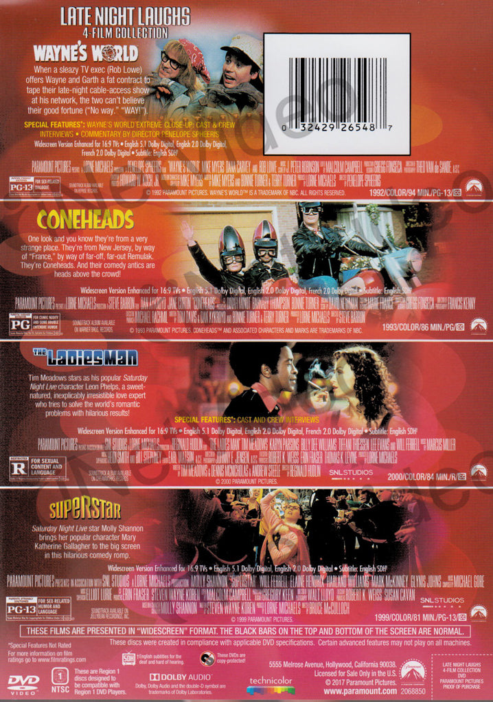 Late Night Laughs (4-Film Collection) (Wayne's World / Coneheads / The Ladies Man / Superstar) -