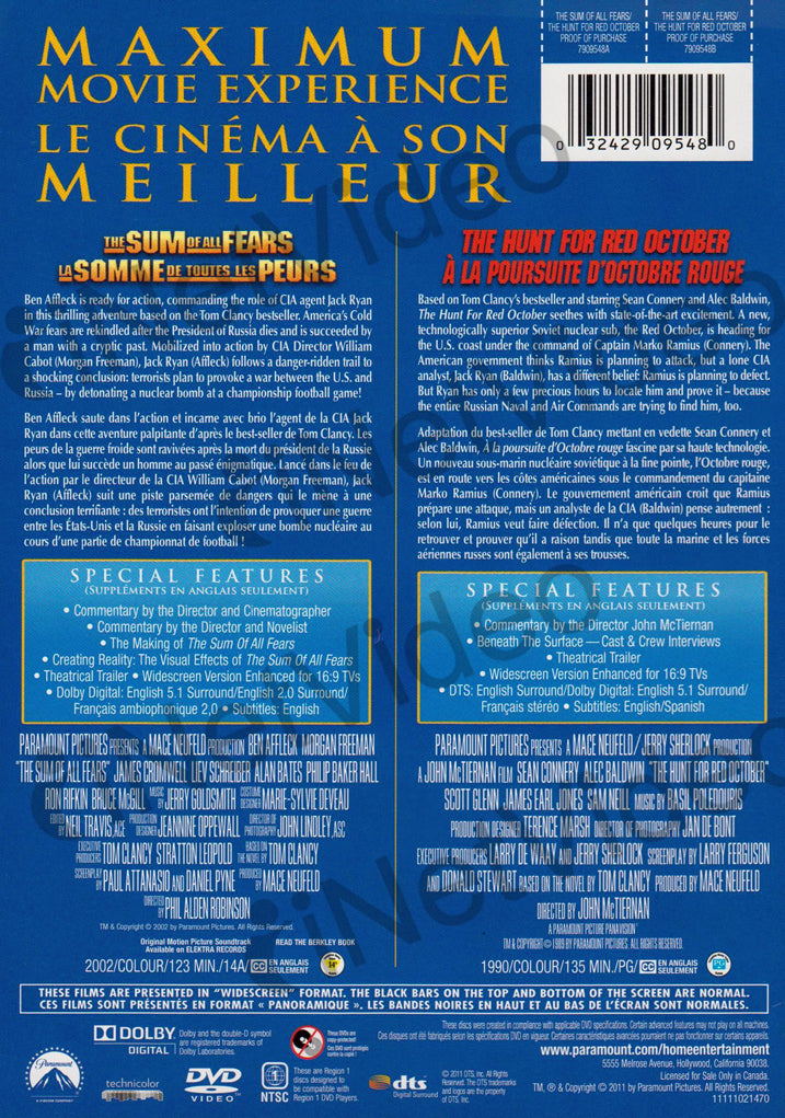 • The Sum of All Fears / The Hunt for Red October (Double Feature) (Bilingual) DVD Movie