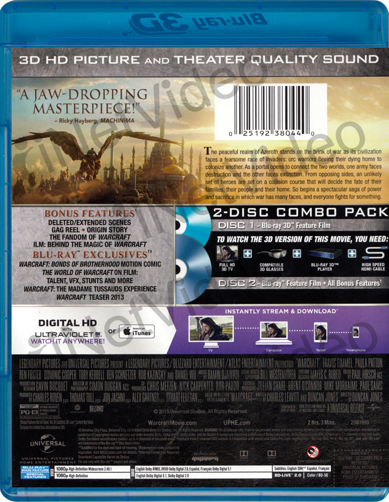 Warcraft (Blu-ray 3D + Blu-ray + Digital HD) (Blu-ray) -