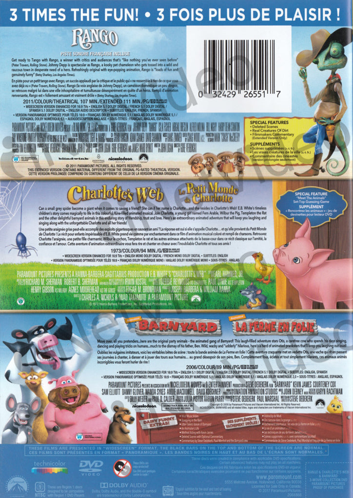 Rango / Charlotte's Web / Barnyard (3-Movie Collection) (Bilingual) -
